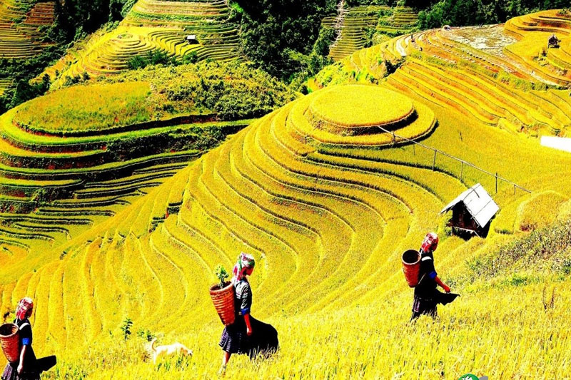 9.30: Start trekking to Lao Chai and Ta Van villages down in Muong Hoa valley. Enjoy the spectacular views of the beautiful valley towards Fansipan – the highest peak of Vietnam and Indochina. Trek through the villages of Black H’mong ethnic minority to learn the way people weaving and embroidering their clothes. Have a break in a local restaurant for lunch then keep going down to enjoy colourful rice paddy fields and reach Ta Van village where the Dzay ethnic people inhabited.